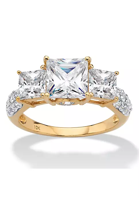 - Main Stone: 1 Princess Faceted Cut Cubic Zirconia, 1.62 carats, 7 mm x 7 mm